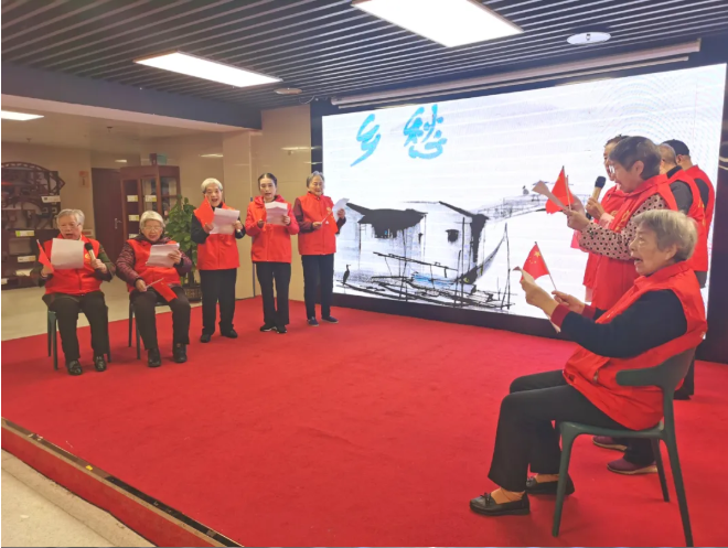 随后,国德文艺队献上了舞蹈表演《365个祝福》,爷爷奶奶们手拿花束、能歌善舞,为在场的长者们送去了引人入胜的表演。