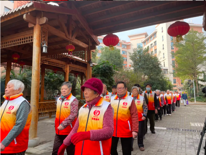 为迎接一年一度的冬季运动会,展现福州市国德老年康养中心积极向上的精神风貌,12月31日上午,在工作人员的带领下,爷爷奶奶们在园区的操场进行了第一次方阵训练。